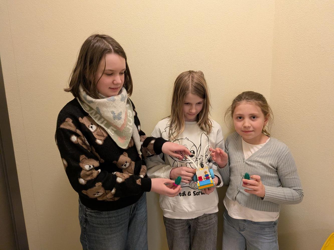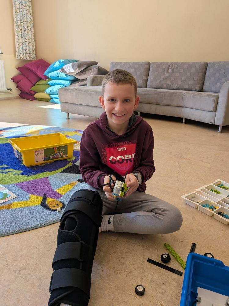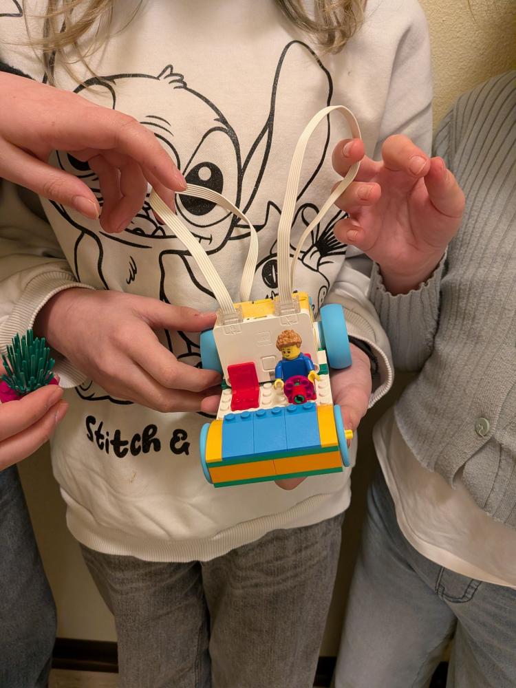 Mit viel Begeisterung wurde gebaut, getestet und verbessert, bis die Modelle schließlich funktionierten. Auf den Fotos präsentieren die Kinder stolz ihre fertigen Projekte und zeigen, was sie im Bereich Robotik und Programmieren gelernt haben.