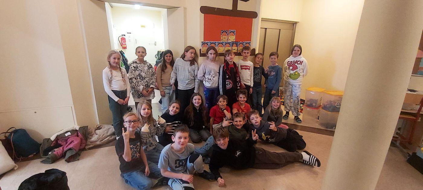 In der Nacht vom 20. auf den 21 fand für die Kinder der zweiten Klasse eine Lesenacht zum Thema "Piraten" statt. Es schneite ununterbrochen, und die Aufregung der Kinder war förmlich zu spüren. Gestartet haben wir mit einer fröhlichen Turnstunde – Völkerball und Merkball sorgten für jede Menge Bewegung und gute Laune. Danach stärkten wir uns gemeinsam mit leckerer Pizza. Danke an Manuela und Natalie für die leckere Bewirtung!