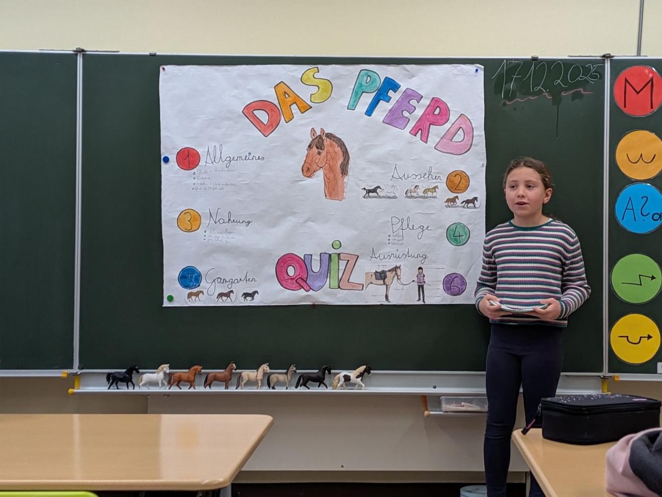 Die Kinder der dritten und vierten Schulstufe haben Referate zu verschiedenen Themen wie Tiere, Planeten, ... vorbereitet, dazu eigenständig Informationen gesammelt und diese in ansprechenden Texten sowie kreativ gestalteten Plakaten umgesetzt. Sogar über tierischen Besuch haben wir uns freuen dürfen. Die Ergebnisse sind sehr gelungen und können sich wirklich sehen lassen.